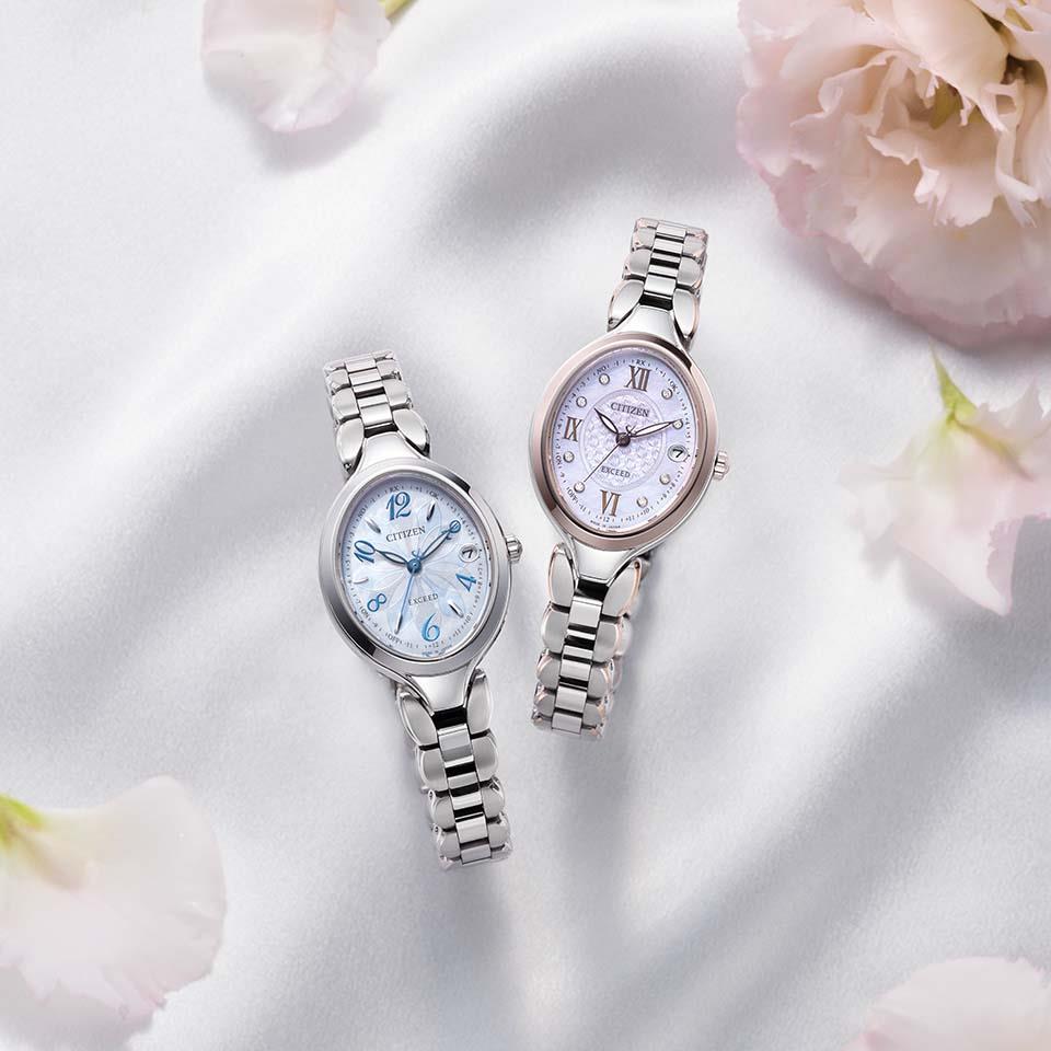 お花をモチーフにしたバンドのデザインが人気のシリーズ。バンドから繋がるようなケースラインがエレガントな印象を演出します。オーバルケースは視認性を確保しながら、着け心地にこだわったサイズ感を実現しました。