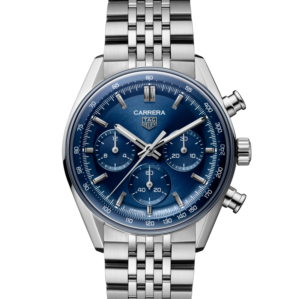 サーキュラーサテン仕上げのブルーダイヤルが目を引く、圧倒的な存在感と洗練されたバランス感覚を兼ね備えた、41mmのタグ・ホイヤー カレラ クロノグラフ。自社製自動巻キャリバー TH20-01を搭載し、タイムレスで汎用性の高いデザインの中にモータースポーツ精神を体現する、カレラが誇る高い精度とパフォーマンスを讃えるトリビュートモデルです。