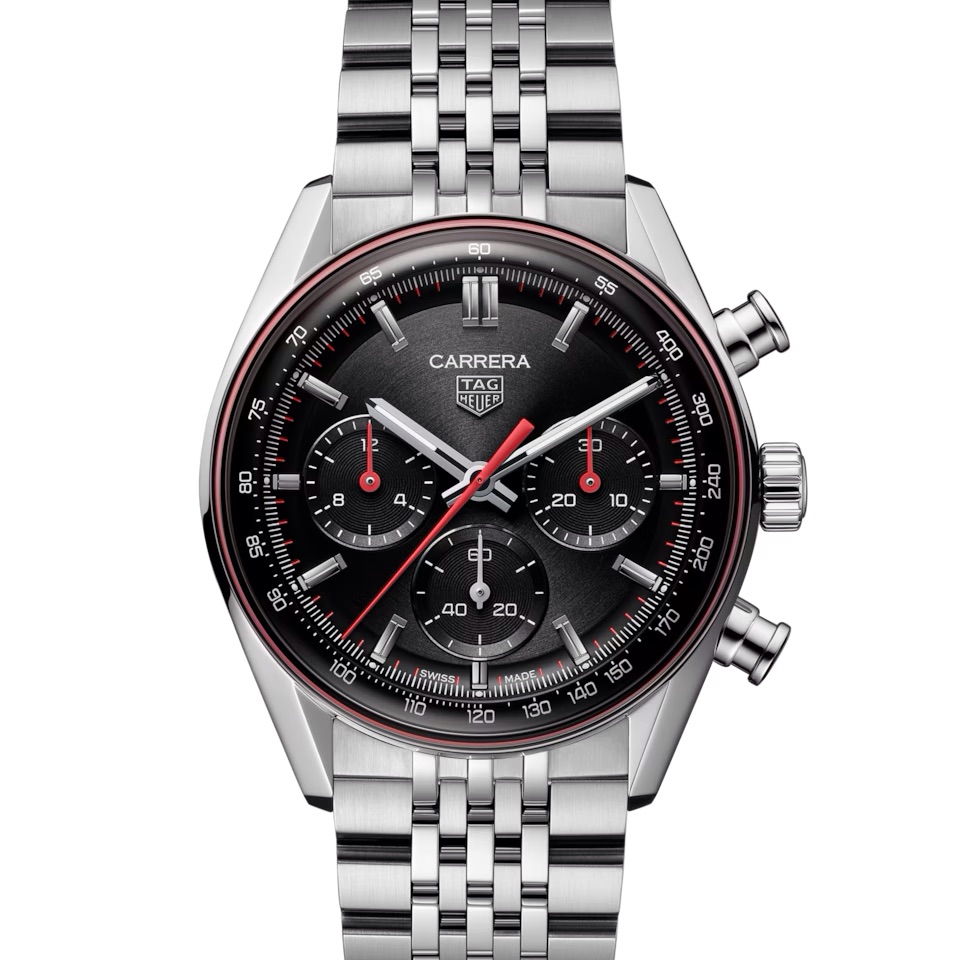 印象的なブラックダイヤルに繊細なレッドの外周リングがモーターレーシングのDNAを体現する、ダイナミックで挑戦的な41mmのタグ・ホイヤー カレラ クロノグラフ。精度とコントラストを大胆に解釈し、モータースポーツからのタイムレスなヘリテージを現代的な感性でシャープに再構築しています。約80時間のパワーリザーブを誇る自社製キャリバー TH20-01を搭載しています。