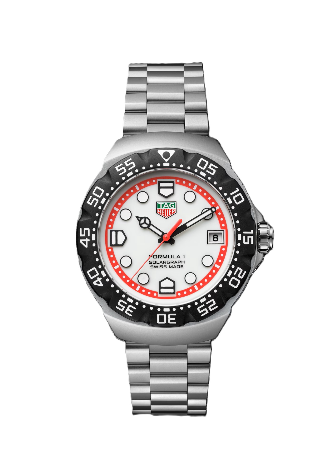汎用性の高い38mmサイズを採用し、そのエネルギッシュな魅力を際立たせる、タグ・ホイヤー フォーミュラ1 ソーラーグラフ。ソーラーパワー駆動のクォーツムーブメントと現代的なデザインで、オリジナルの「シリーズ1」モデルを先端素材と鮮やかな色使いで再解釈した、新世代に贈るダイナミックなタイムピースです。