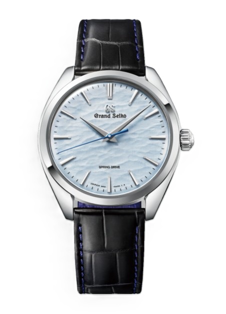 スプリングドライブモデルが生まれる信州 時の匠工房にほど近い諏訪湖で、真冬に全面結氷した時に起きる神秘的な自然現象「御神渡り(おみわたり)」をイメージしたダイヤルのモデルです。湖上で隆起した氷の山脈を表現したアイスブルーのダイヤルの上を、ブルースチールの秒針が流れるように進みます。ムーブメントは信州 時の匠工房で作られ、約72時間の持続時間を持つ手巻スプリングドライブキャリバー「9R31」を搭載。薄く長い2本の動力ぜんまいを並列に重ねるデュアル・スプリング・バレルを採用しています。また、ヘアライン仕上げの美しいムーブメントの外観も特徴です。