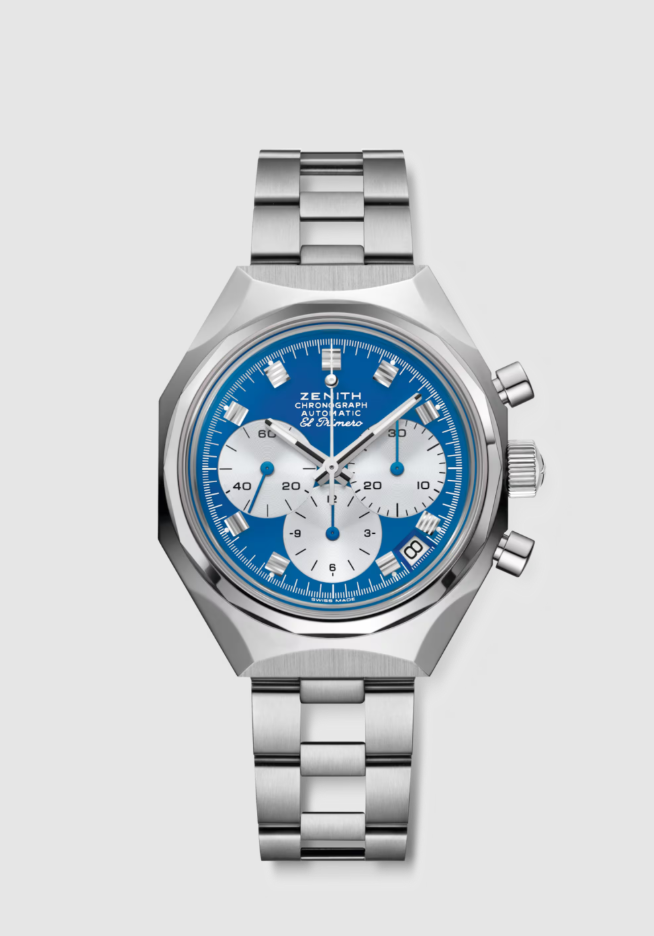 “架空の遺産”を形にした作品は、初代デファイの腕時計をインスピレーションに、アイコニックな自動巻エル・プリメロ コラムホイール クロノグラフ ムーブメントを搭載しています。また、同時代を象徴するもうひとつのアイコン、USMハラーシステムのデザインを取り入れています。14面のベゼルを備えた頑強な八角形のステンレススチールケースに、印象的なUSM ジェンシャンブルーの文字盤を組み合わせています。ステンレススチール製の「ラダー」ブレスレットが付属。