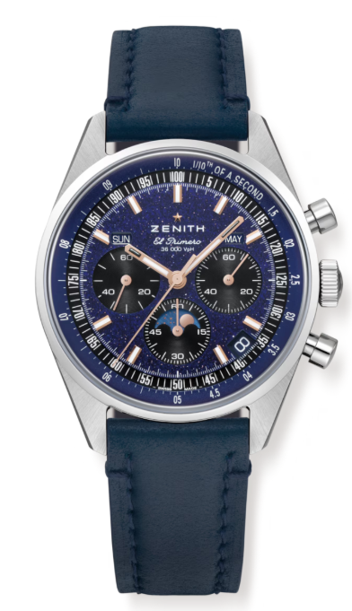 アヴェンチュリンを文字盤に採用した日本だけのスペシャル エディション。深く吸い込まれるような表情を持つアヴェンチュリンは、その繊細な素材の特性からごく一部のメゾンのみで時計の文字盤への採用が実現する素材です。現在、ゼニスでのアヴェンチュリンの採用は本モデルのみとなります。質感が変化していく特徴的なレザーであるコードバンレザーのストラップは、ユニークなタイムピースをさらに特別な存在にしてくれます。日本160本限定。