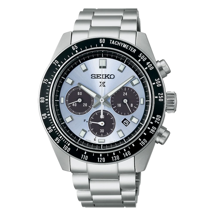 そのインデックスと、初代 スピードタイマーを彷彿させる力強い時分針にはセイコー独自のルミブライトを塗布。