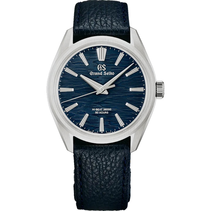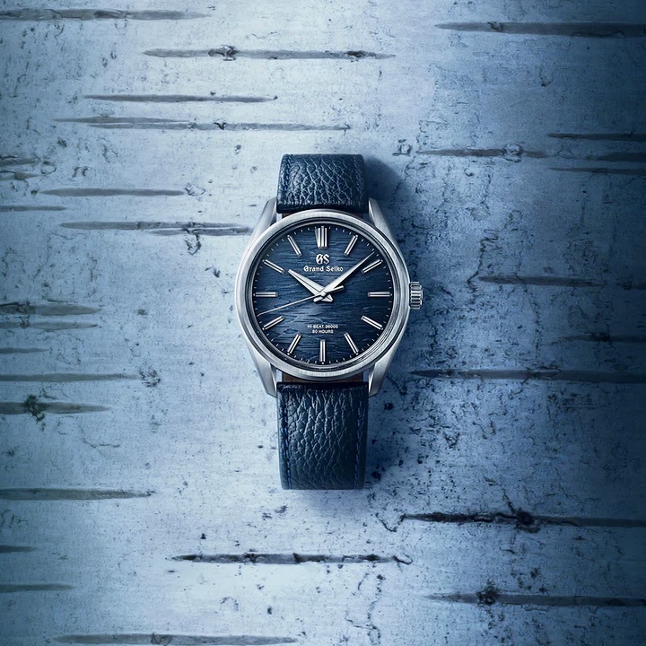 グランドセイコーの真髄と日本の美意識を高い次元で融合させた独自のデザイン文法「エボリューション9スタイル」をベースにした、10振動手巻メカニカルウオッチです。ネイビーカラーのダイヤルは、月あかりに照らされた白樺の樹皮をイメージしました。ステンレススチール製のケースは厚さ9.95mmと薄型に仕上げ、すっきりとしたインデックスやベゼル、ラグの幅が、グランドセイコーのドレスウオッチにふさわしい繊細で優美なる存在感を演出。ムーブメントには、安定した精度につながる毎秒10振動という高い振動数と、最大80時間もの長い持続時間を実現する「キャリバー9SA4」を搭載しています。