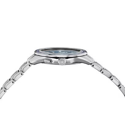 両面反射防止コーティング付きのサファイアガラスや、ザラツ研磨によるチタンケース、バンドの上質な仕上げなど、フラッグシップラインならではのこだわりをそのままに、時・分・秒針のシンプルな3針仕様で、美しさと高い視認性を実現しています。