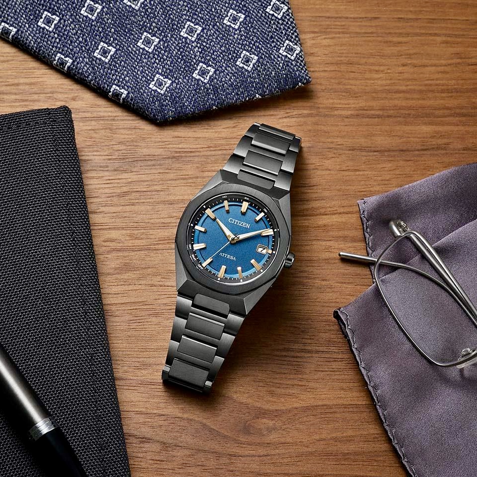 メタリックな質感を生かした深いネイビーに、ピンクゴールドのインデックスと針を重ねたラグジュアリーな仕上がりで、都会の夜に映える、洗練された大人の魅力を感じさせる1本です。