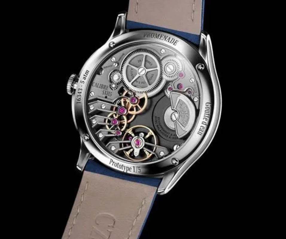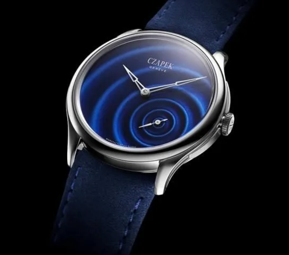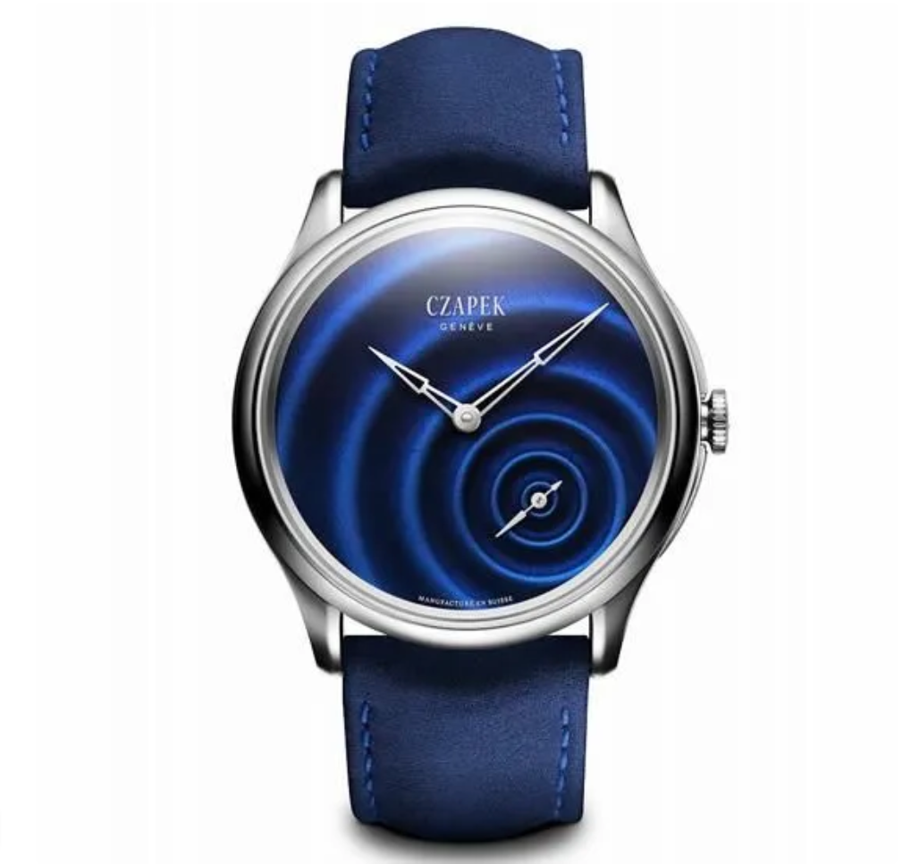 Czapek Promenade “Goutte d’Eau” は、スイス高級時計メゾンCzapekが手掛けるドレスウォッチ。38mmのスリムケースに、自社製マイクロローター自動巻きキャリバーSXH5を搭載し、約60時間のパワーリザーブを備えます。グラン・フー・エナメルによる「水の雫」ダイヤルは、光と陰影が織りなす幻想的な表情を生み出し、7つのスケルトンブリッジが芸術的なムーブメントの美を際立たせます。