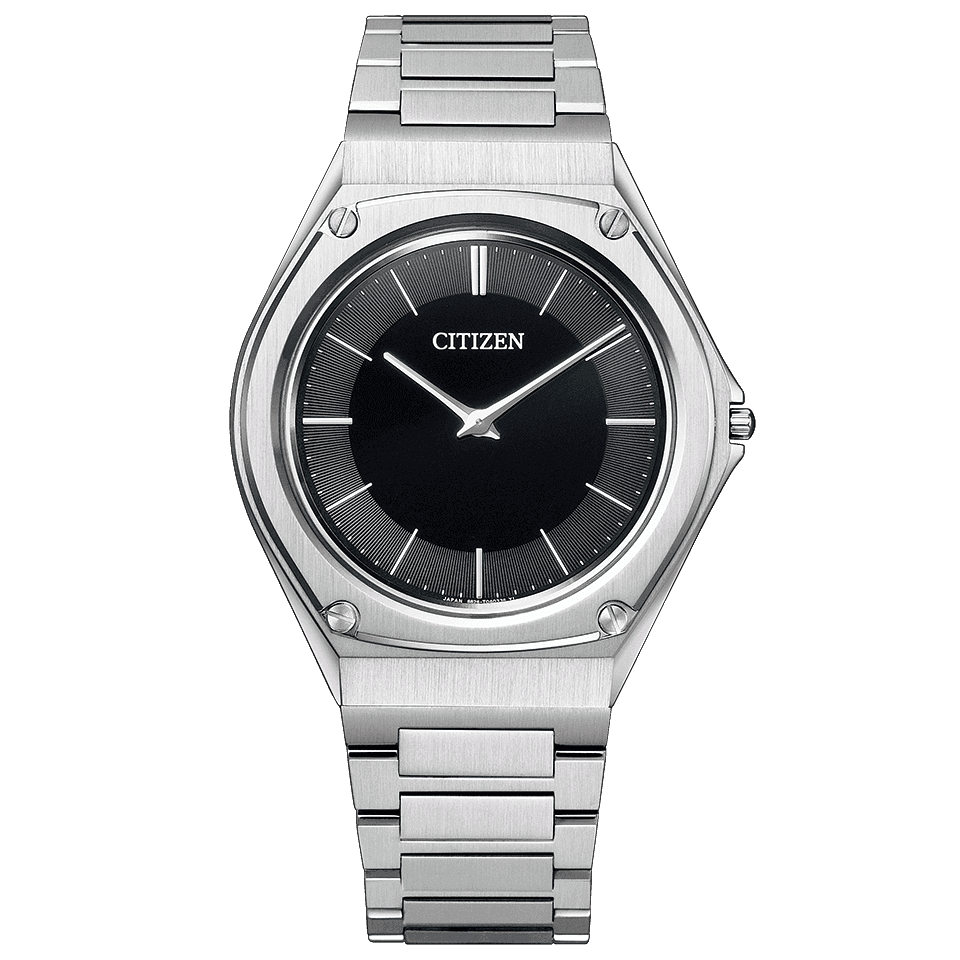 AR5024-01E キャリバーNo:8826 動力:光発電エコ・ドライブ 精度:±15秒/月 持続時間:光発電約1年 重量:35g 厚み:2.98mm ケースサイズ:横 39.0mm ケース素材:ステンレス ケース表面処理:デュラテクトDLC(ブラック色) バンド素材・タイプ:ワニ革、両プッシュ観音開きタイプ バンド幅:19.0mm バンド調整可能サイズ:154~184mm ガラス:サファイアガラス(クラリティ・コーティング) 防水性能:日常生活用防水 デザイン特徴:裏ぶた銘板:シルバー・サーメット 厚み:2.98mm 機能: 充電禁止温度検出機能 過充電防止機能 フル充電時約1年可動 原産国:日本製 すべてを削ぎ落とした引き算の美。 マニュファクチュールとして、圧倒的な、気の遠くなるほどの手間と時間をかけて、 過度な機能や華美な装飾を極限まで削ぎ落とし、時計の美しさを限りなくシンプルに表現することを追求しました。 過度な機能や華美な装飾を極限まで削ぎ落とし、時計の美しさを限りなくシンプルに表現する。 そのための最大の挑戦は、薄さ1.00mmのムーブメントに85個もの部品を内包することでした。 薄さの追求は、美しさの追求でもあります。 しかし最大の問題点は、その強度でした。 そこでEco-Drive Oneでは、薄さと強度の相反する要素を両立できる新素材を採用し、作製に成功しました。 シンプルさを追求した先に出来上がったシチズンの持てる技術を詰め込んだ渾身の1本。 最薄モデルをお探しの方には、こちらがお勧めです! AR5024-01E オンラインショッピングページ