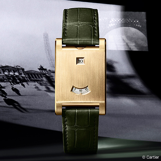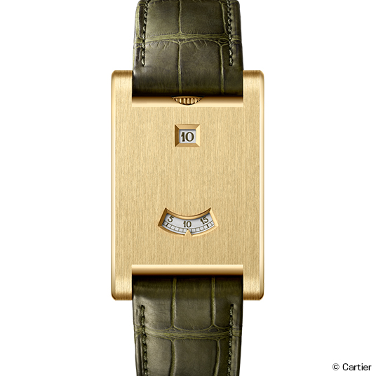 仕様:時表示小窓(12時位置)、分表示小窓(6時位置)、ゴールドフィニッシュのディスク、アラビア数字のインデックス、グリーンの分目盛