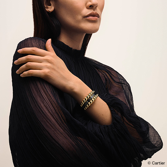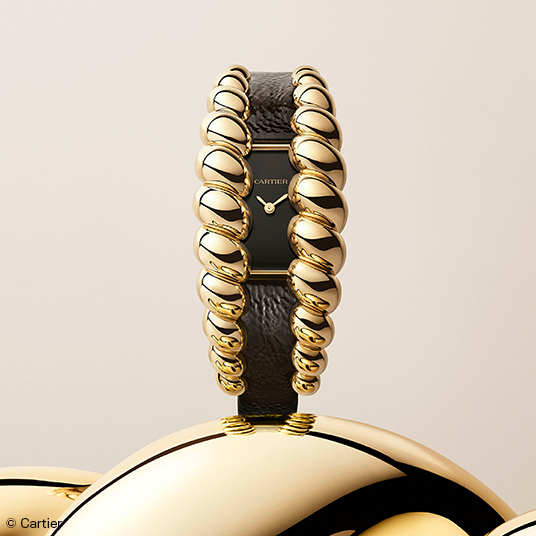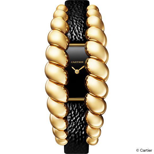 ストラップ:シャイニーブラックレザーとブラックスムースレザーの2本のストラップ、イエローゴールド製アルディロンバックル
