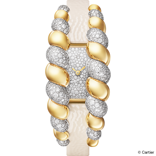 仕様:時・分表示、ケースとバックルにブリリアントカットダイヤモンド466個、ホワイトゴールド製ダイアルにブリリアントカットダイヤモンド156個