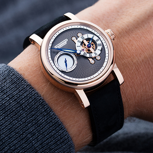 仕様:3時位置に時表示、中央に分表示、9時位置に秒表示、ハンドギョーシェのガルバニック仕上げダイヤル、「フィーユ」型のブルースティールポリッシュ仕上げ針にスーパールミノバ、サファイアクリスタルを備えたねじ込み式ケースバック