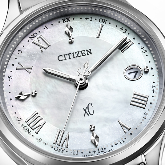 仕様:時・分・秒・日付表示、パワーセーブ機能、電波受信(日中米欧)、パーフェックス、ワールドタイム機能(24時差)、パーペチュアルカレンダー、サマータイム機能、定時受信機能、強制受信機能、充電残量表示機能、夜光(針)、球面サファイアガラス(無反射コーティング)、白蝶貝文字板、耐ニッケルアレルギー、第1種耐磁時計