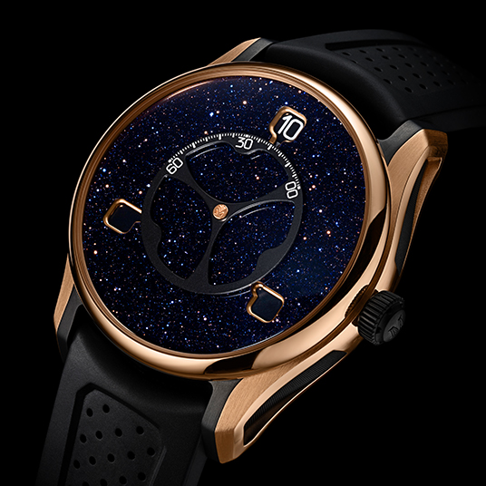 ケース素材:5Nレッドゴールド、ブラックDLC仕上げを施したチタン製インサート付き