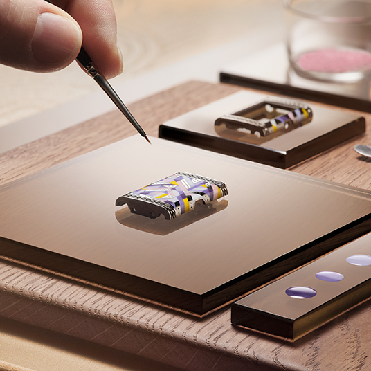 仕様:時・分表示、マザー・オブ・パールダイヤル、ケースバックに細密画グラン・フー・エナメルとダイヤモンド、ダイヤモンド277個(約1.59カラット)