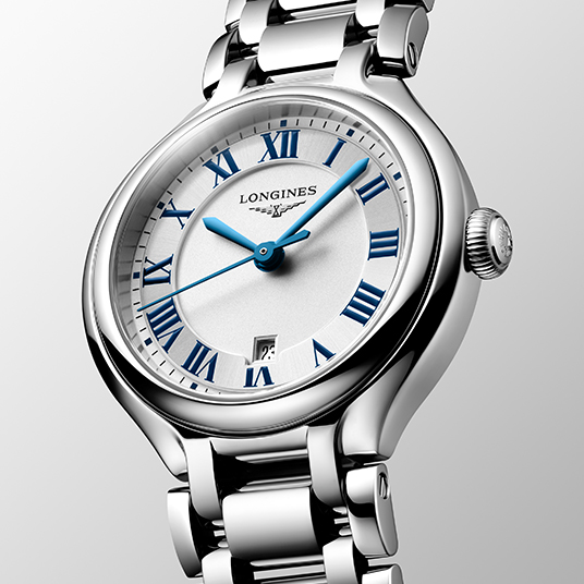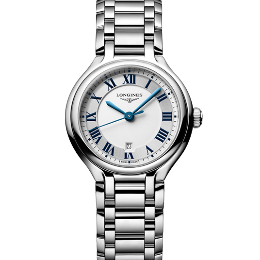 仕様:時・分・秒・日付表示、サンレイシルバーダイアル、12個のブルーのローマン数字