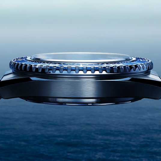 仕様:時・分・秒表示、ホワイトのエナメルでダイビングスケールを施したブルーセラミック製ベゼルリング、グレード5チタン製インナーリング、マットブラックダイアル、グレード5チタン製ねじ込み式ケースバックにシーホースのエンブレム