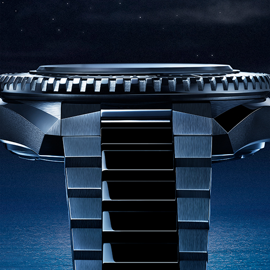 仕様:時・分・秒表示、ホワイトのエナメルでダイビングスケールを施したブラックセラミック製ベゼルリング、グレード5チタン製インナーリング、グレード5チタン製インナーリング、マットブラックダイアル、グレード5チタン製ねじ込み式ケースバックにシーホースのエンブレム