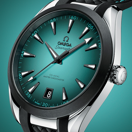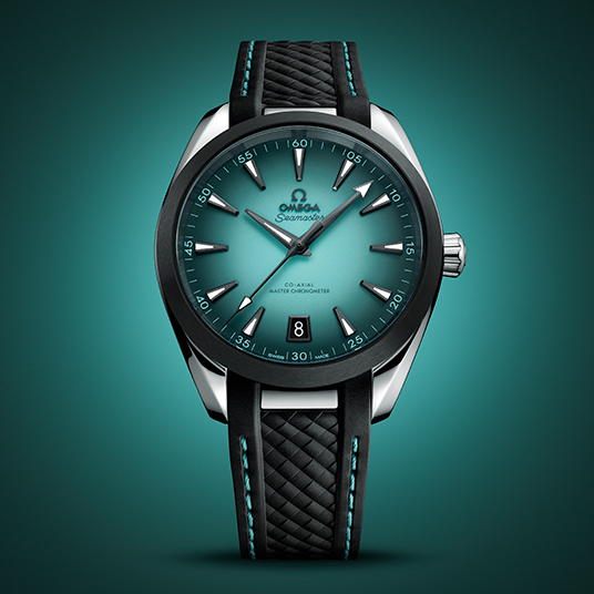 仕様:時・分・秒・日付表示、ブラックセラミック製ベゼル、内側に無反射コーティングを施したサファイアクリスタル製のドーム型風防ガラス、ターコイズダイアル、ホワイトのスーパールミノヴァを塗布したアワーマーカーと針、シースルーケースバック