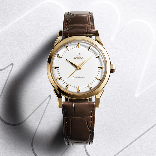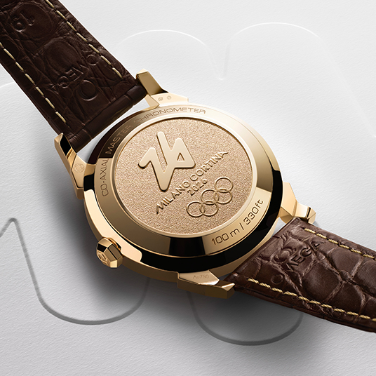 仕様:時・分・秒表示、ホワイトのグラン・フー エナメル ダイアル、ヴィンテージのオメガロゴの入ったポリッシュ仕上げの六角形のリュウズ、内側に無反射コーティングを施したサファイアクリスタル製のボックス型風防、ケースバックにミラノ・コルティナ 2026 オリンピックのロゴをあしらったメダリオン