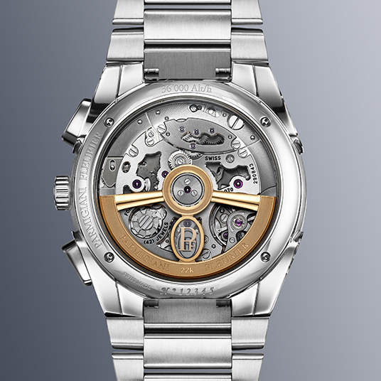 ムーブメント:自動巻き、Cal.PF070(自社製)、毎時36,000振動(5Hz)、約65時間パワーリザーブ、42石、COSC認定
