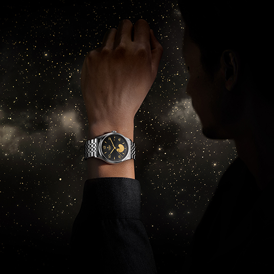仕様:時・分・秒・日付表示、ムーンフェイズ、サンブラッシュドサテン仕上げのブラックダイアル、アプライド アワーマーカー、316スチール製スクリュー式リューズにチューダーロゴのレリーフ