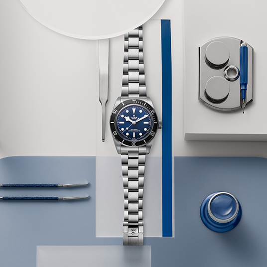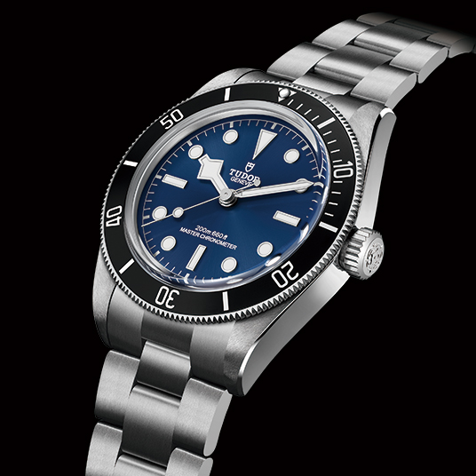 仕様:時・分・秒表示、ステンレススチール製60分逆回転防止ベゼルにマットブラックのアルマイト加工のインサート、ドーム型のサンブラッシュドサテン仕上げのチューダー ブルーダイアル、アプライドアワーマーカー、ステンレススチール製スクリュー式リューズにチューダーローズのレリーフ